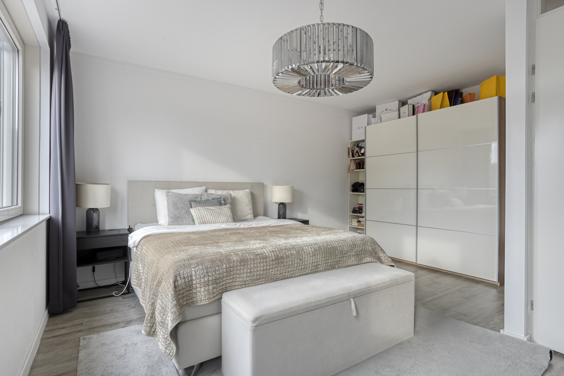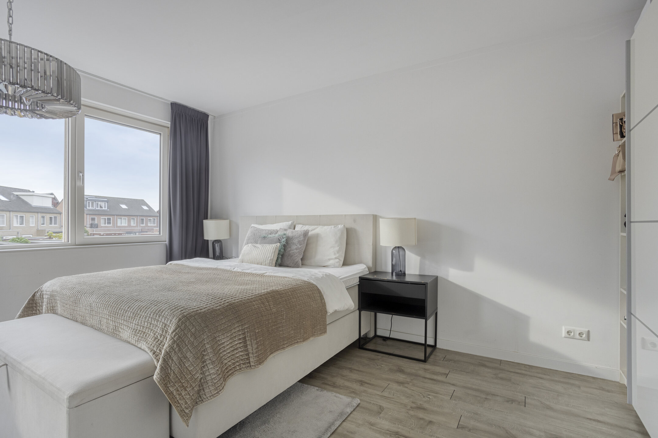 Slaapkamer 2 (masterbedroom) aan de achterzijde (ca. 4.95 x 5.15 m). Deze ruimte bestond oorspronkelijk uit twee slaapkamers en kan eenvoudig weer worden teruggebracht.