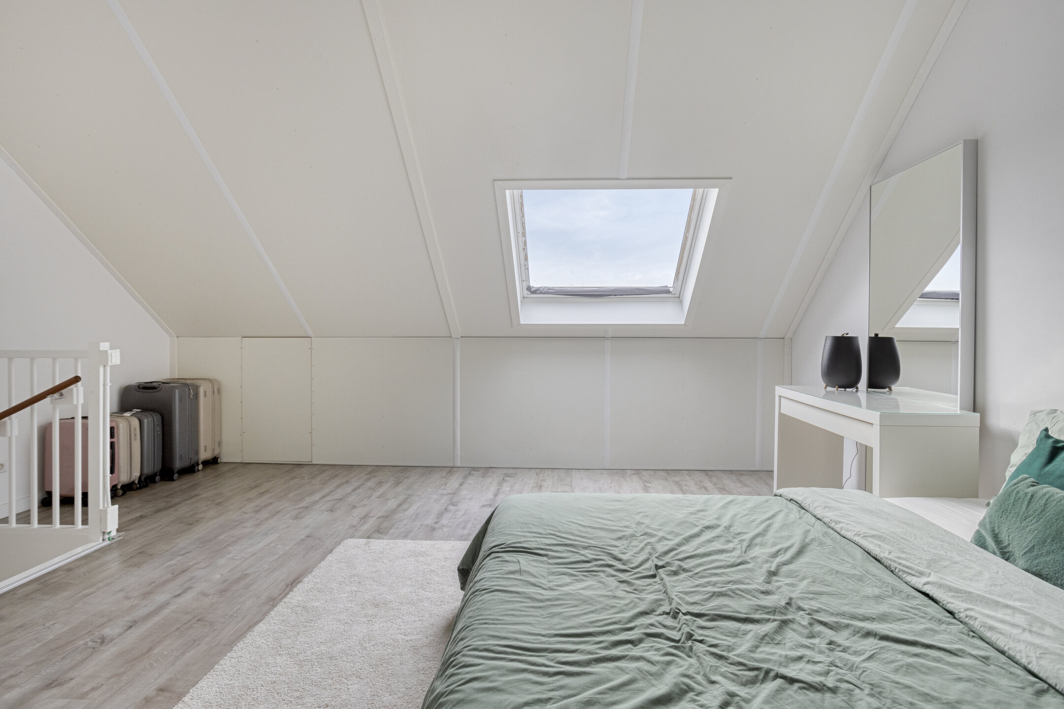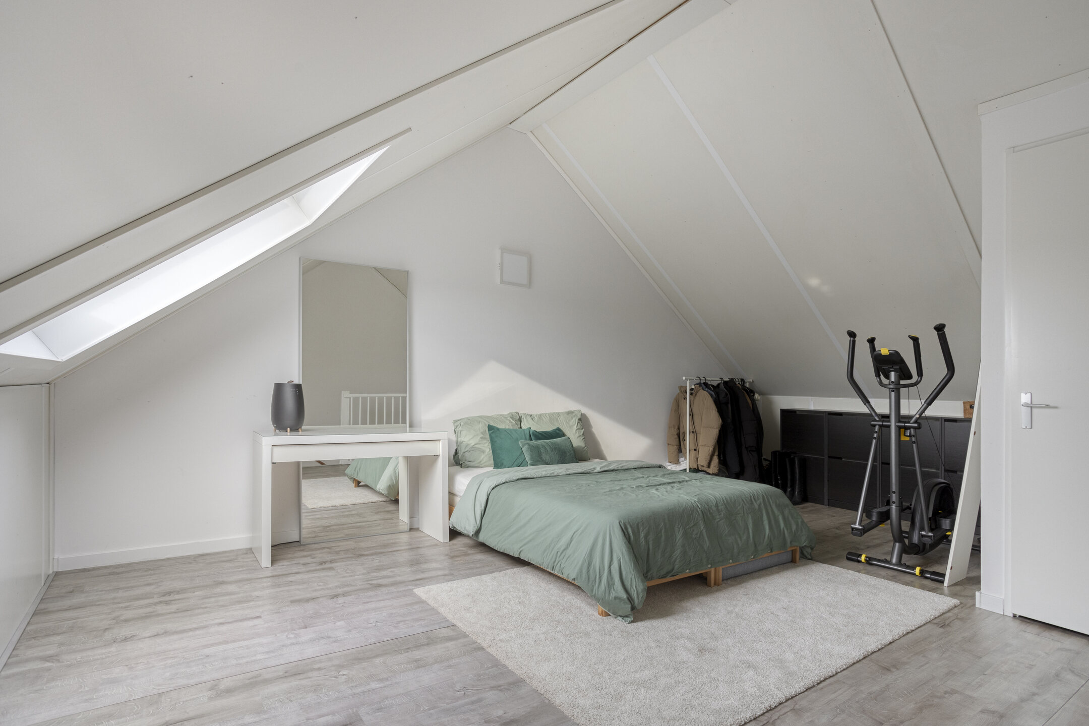 Deze ruime, open zolder biedt volop mogelijkheden om extra slaapkamers of een werkkamer te realiseren. Dankzij het Velux dakraam is er veel daglicht.