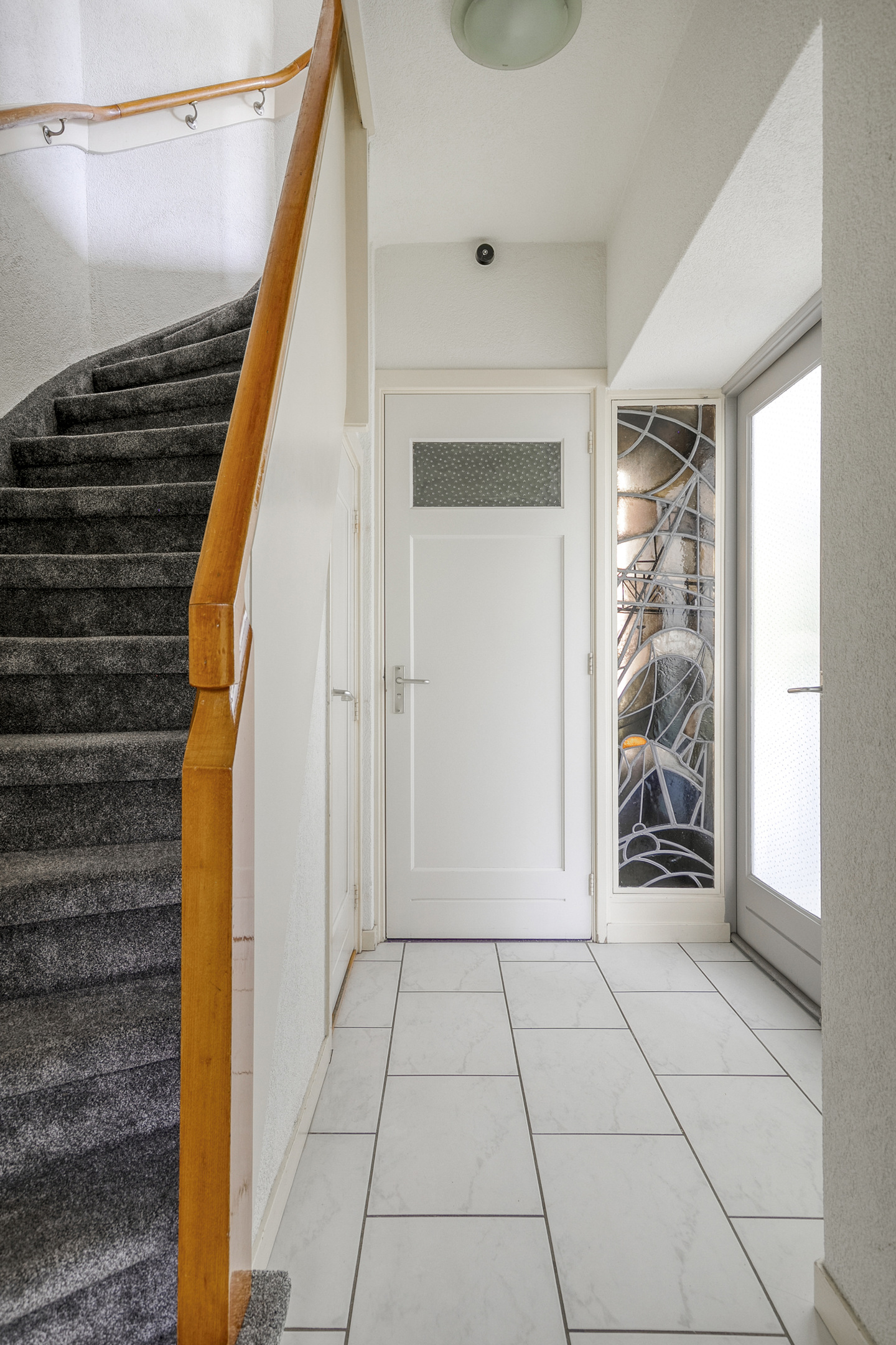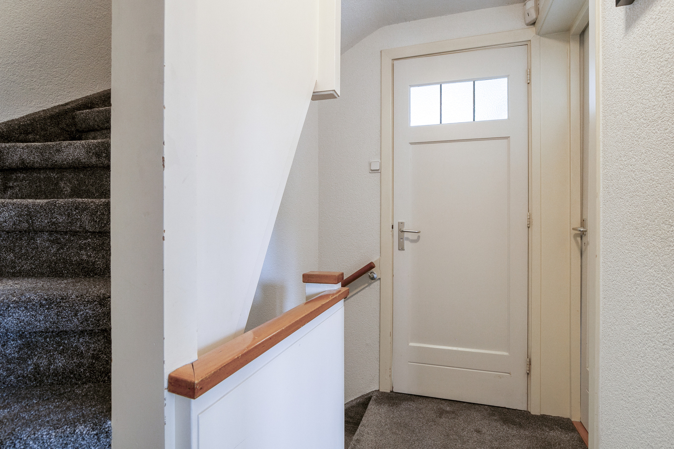 Entree, hal met toegang tot het toilet, het souterrain, de trap naar de eerste verdieping en de woonkamer.
