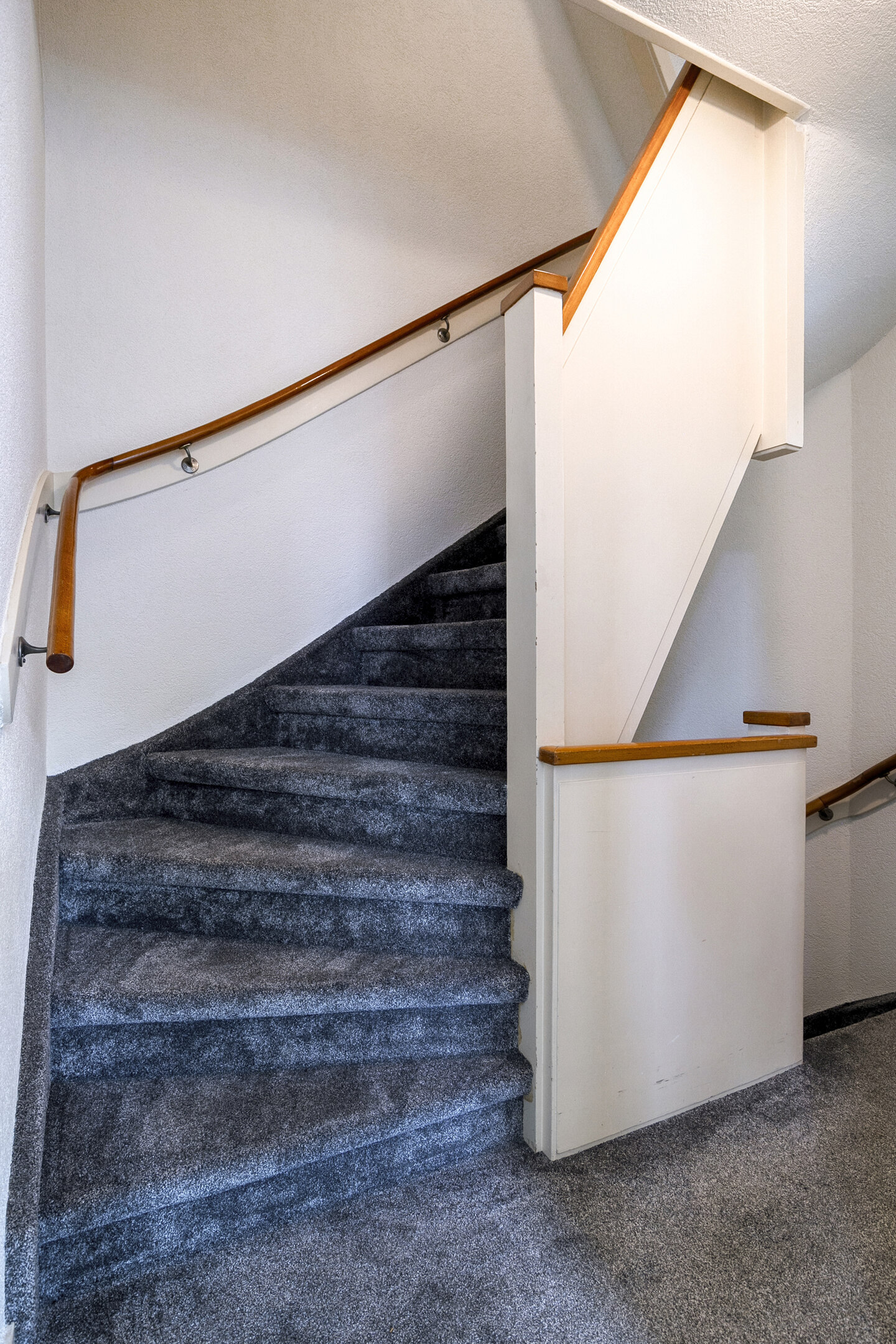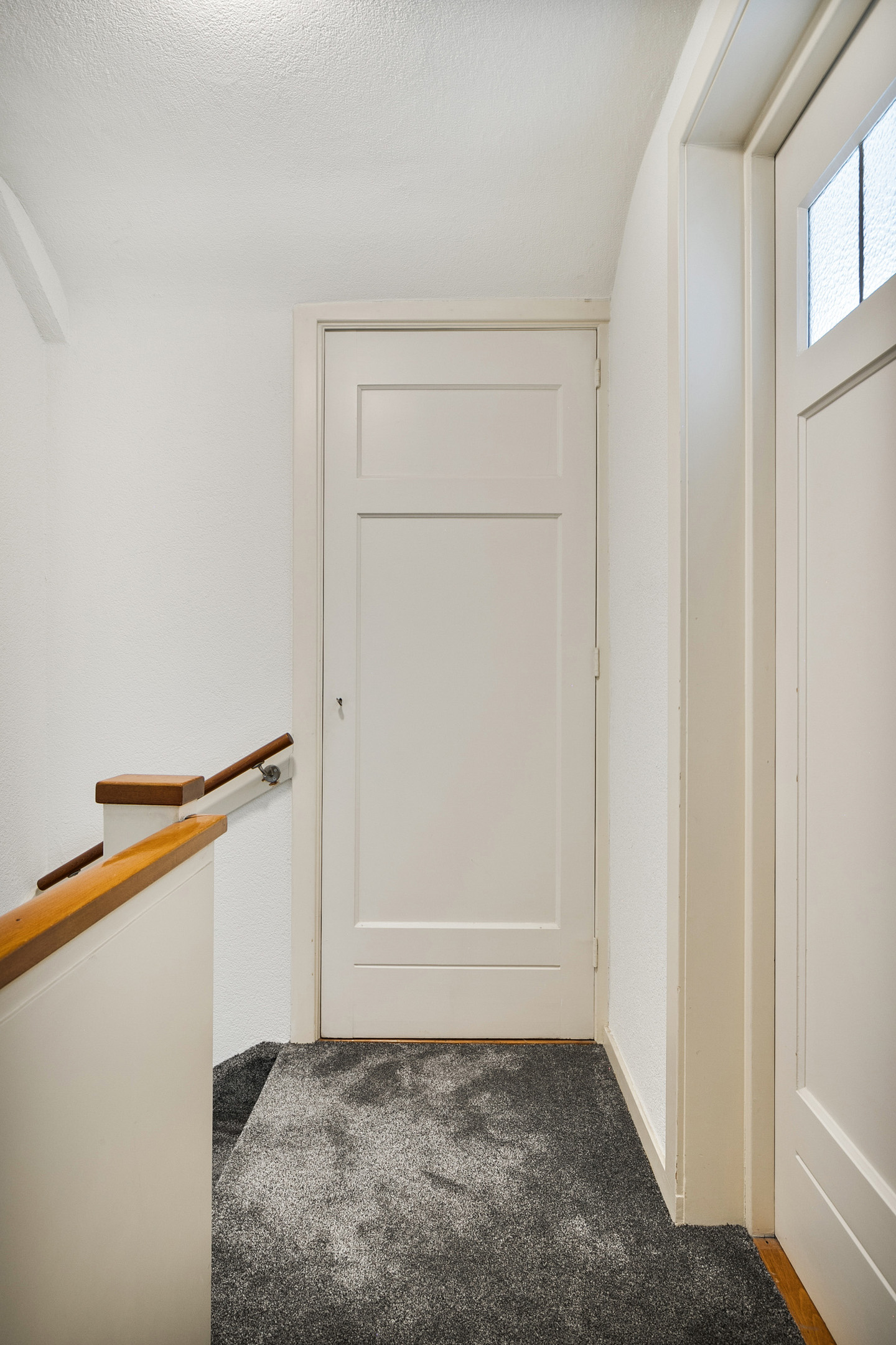 De overloop biedt toegang tot de twee slaapkamers en de badkamer.