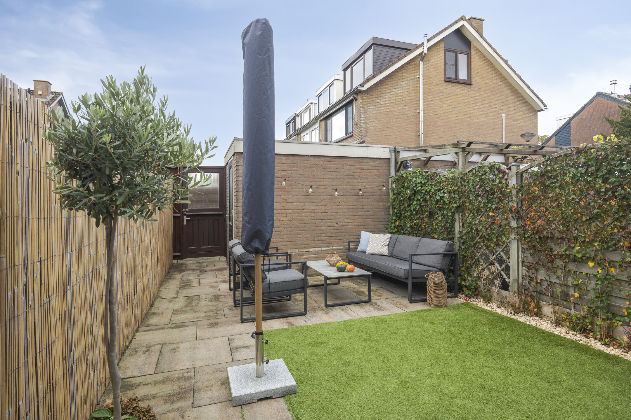 De verzorgde achtertuin ligt op het westen, beschikt over een achterom en een vrijstaande berging.