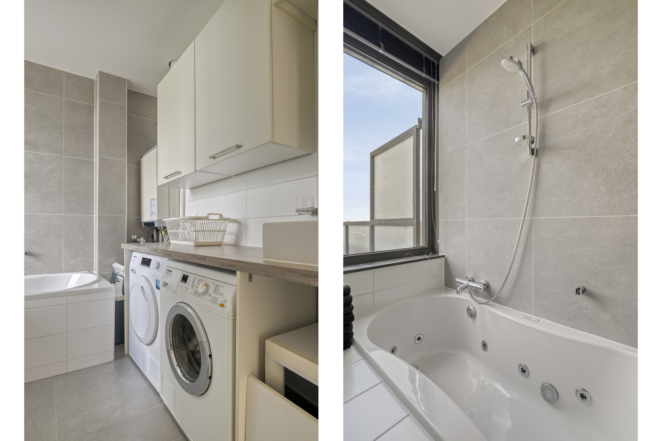De tweede badkamer is uitgerust met een whirpool-ligbad met bubbels en verlichting, koelkastje, aansluitingen voor de wasmachine en droger, een wastafel en opstelplaats voor de cv-ketel.