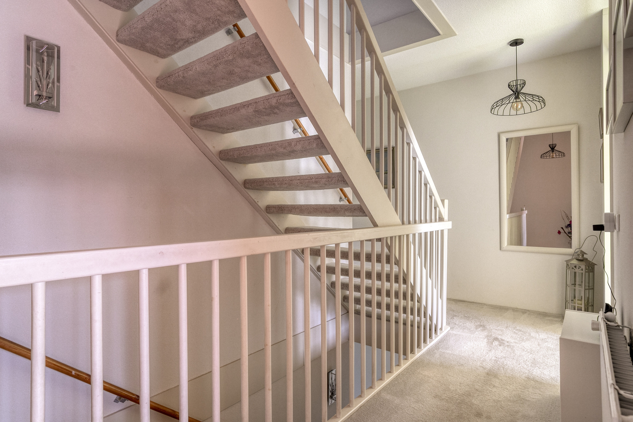 Overloop met separaat toilet en toegang tot drie slaapkamers.