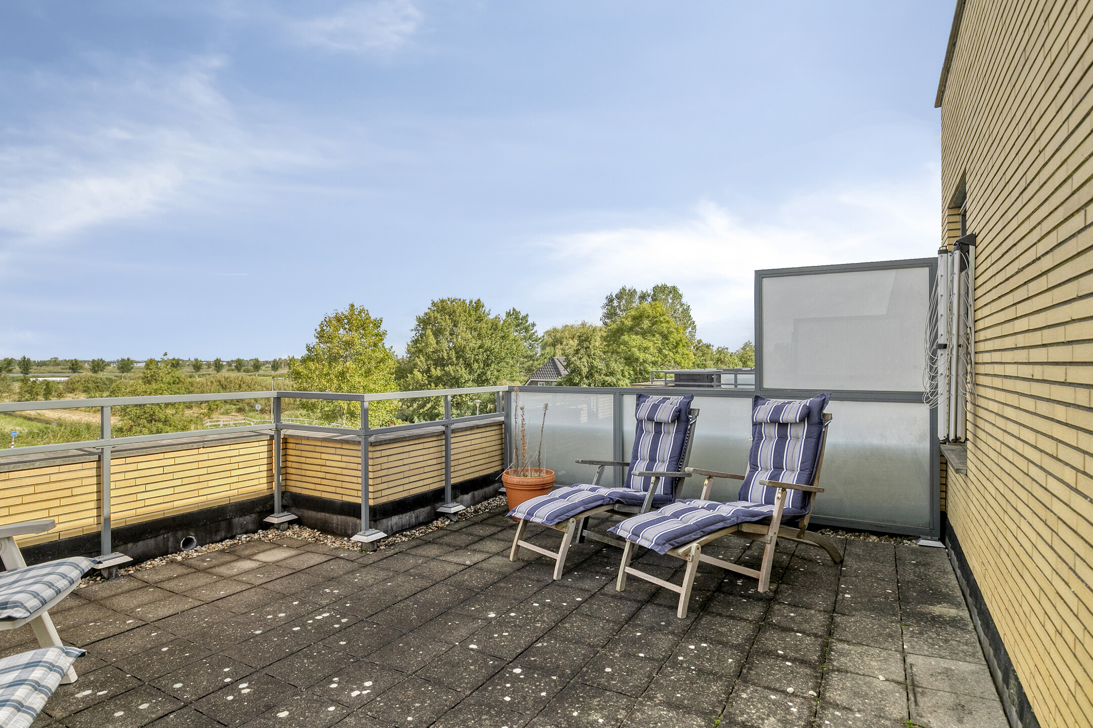 De overloop biedt toegang tot het dakterras aan de voorzijde, eveneens met prachtig uitzicht over De Groenzoom.