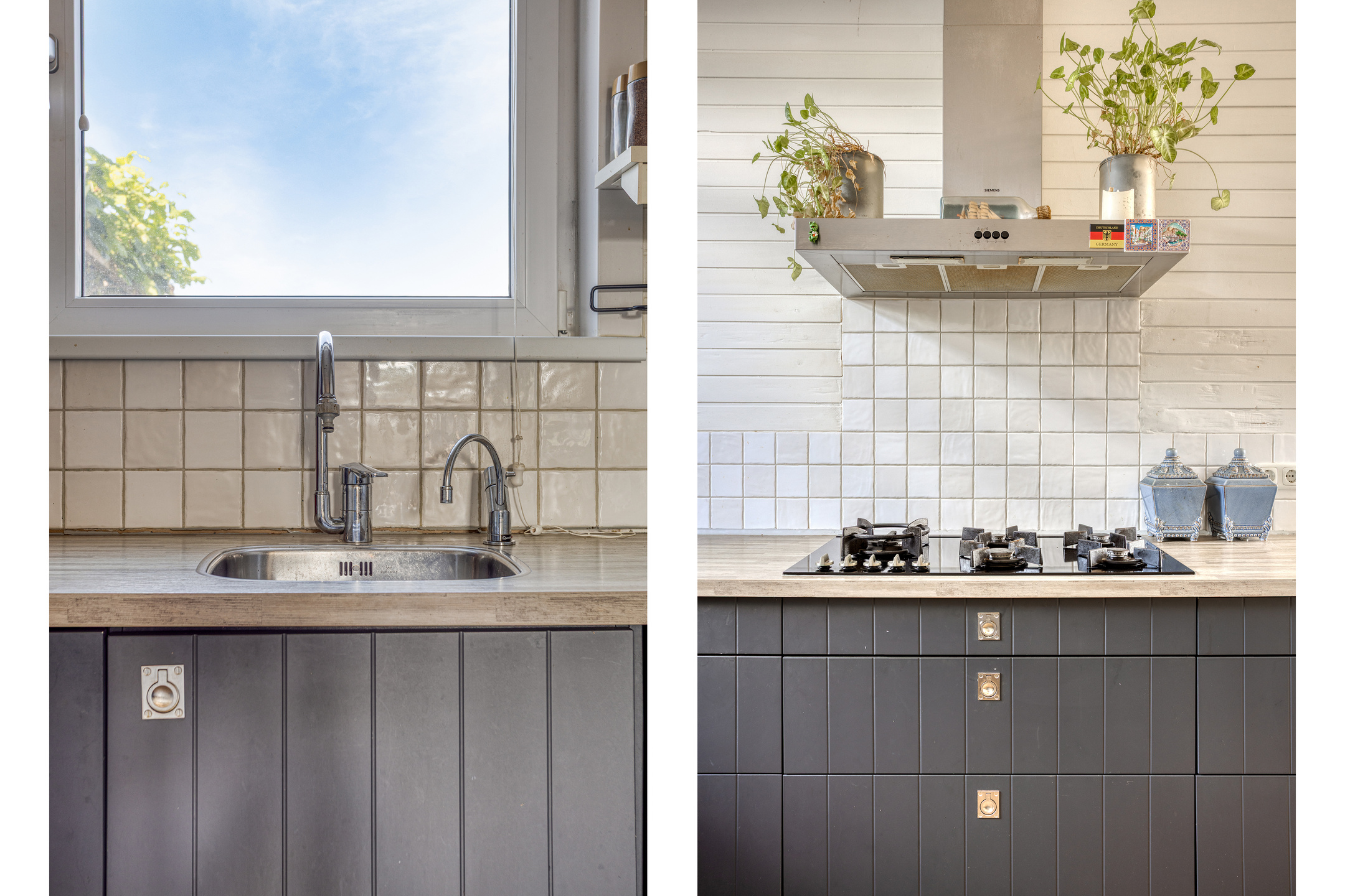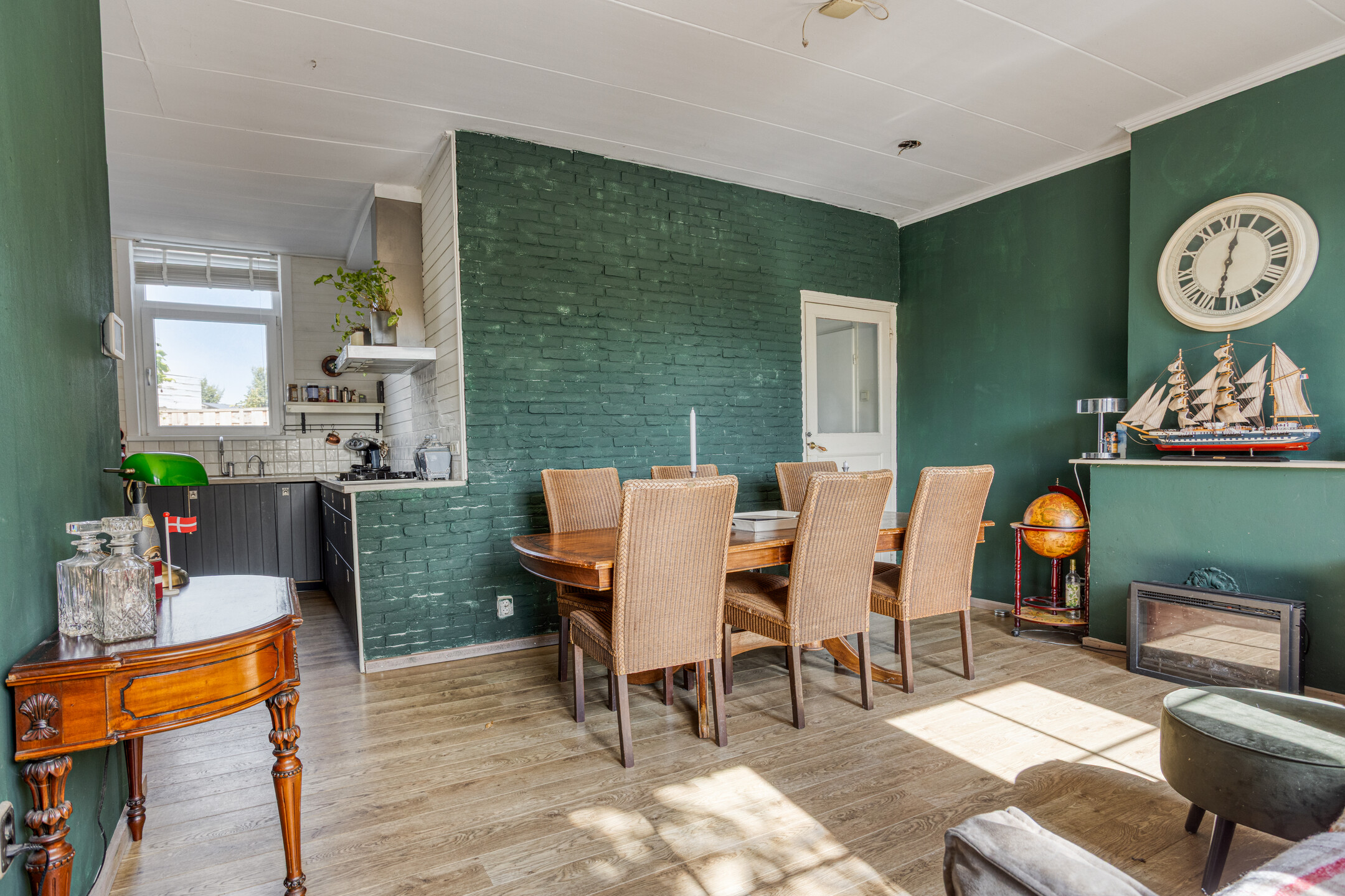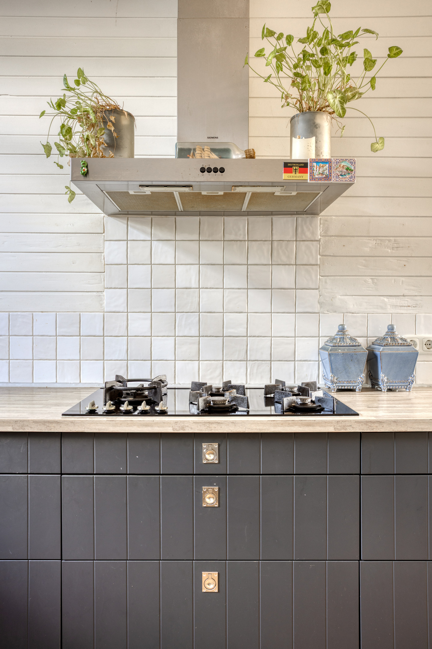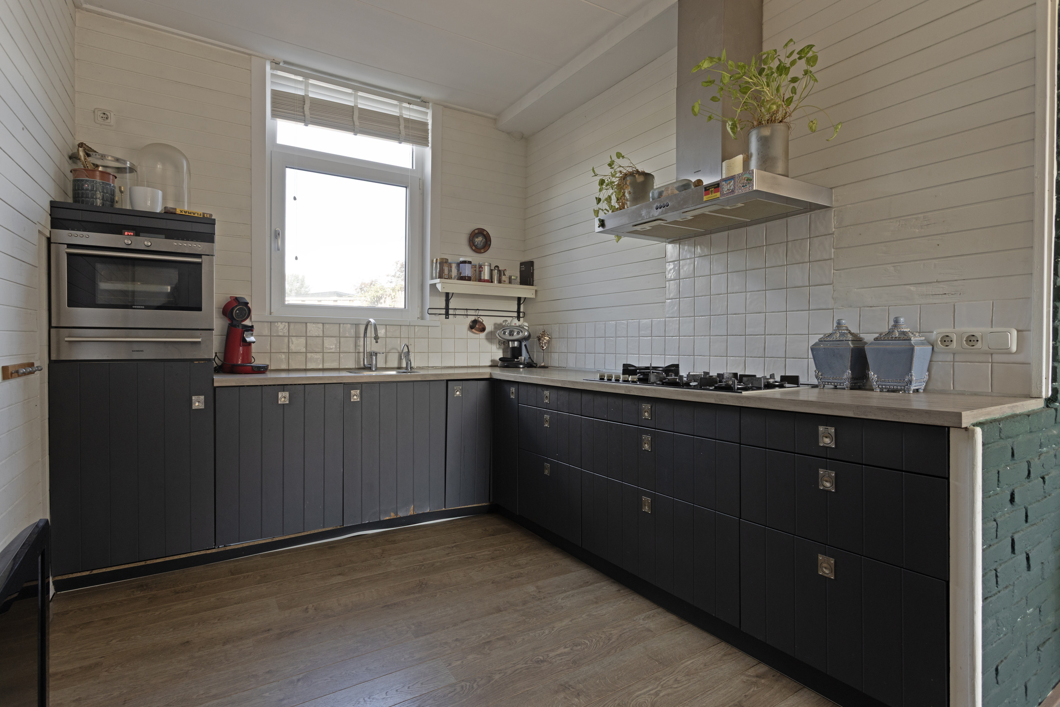 Via de entree met trapopgang naar de eerste verdieping betreed je de sfeervolle woonkamer, voorzien van een mooie houten vloer. Aan de achterzijde bevindt zich de L-vormige open keuken, uitgerust met diverse inbouwapparatuur zoals een combi-oven, koelkast, 5-pits gasfornuis, afzuigkap en een Quooker.
