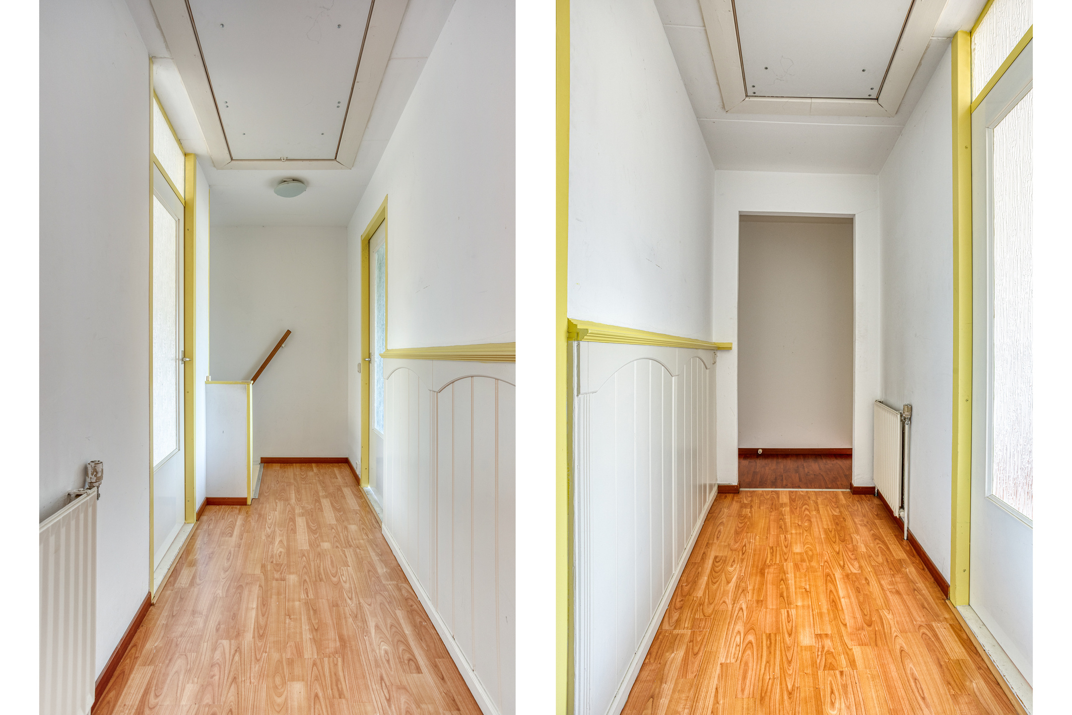 De overloop biedt toegang tot alle vertrekken en de vliering (middels vlizotrap). Aan de voorzijde bevinden zich twee slaapkamers, beide voorzien van een dakkapel en kunststof kozijnen met dubbel glas. In een van deze kamers bevindt zich tevens de opstelplaats van de cv-ketel.