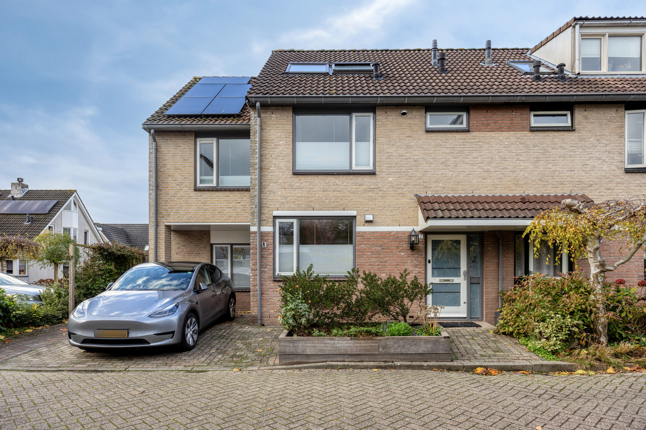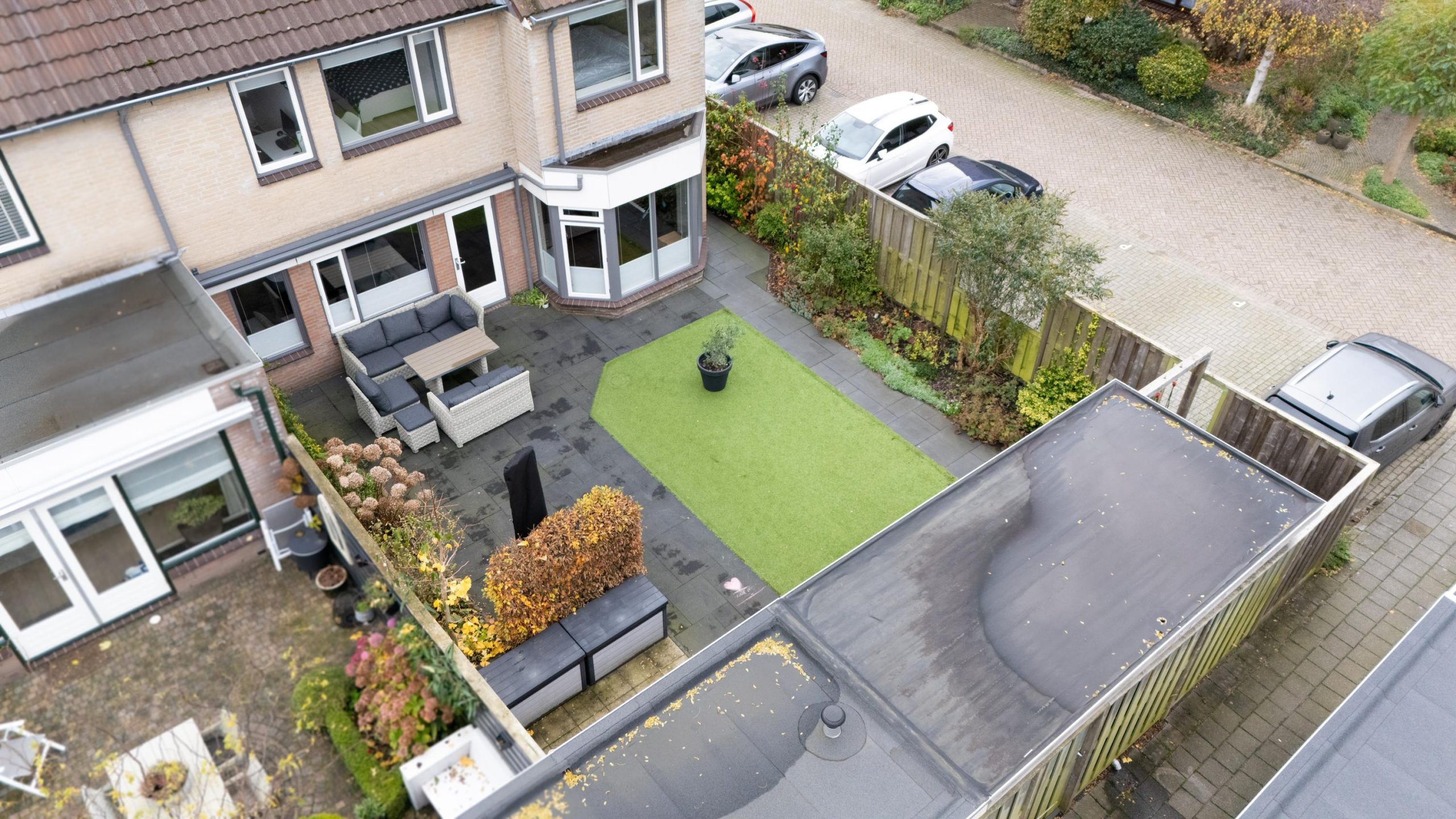 De voortuin biedt ruimte om de auto op eigen terrein te parkeren.
