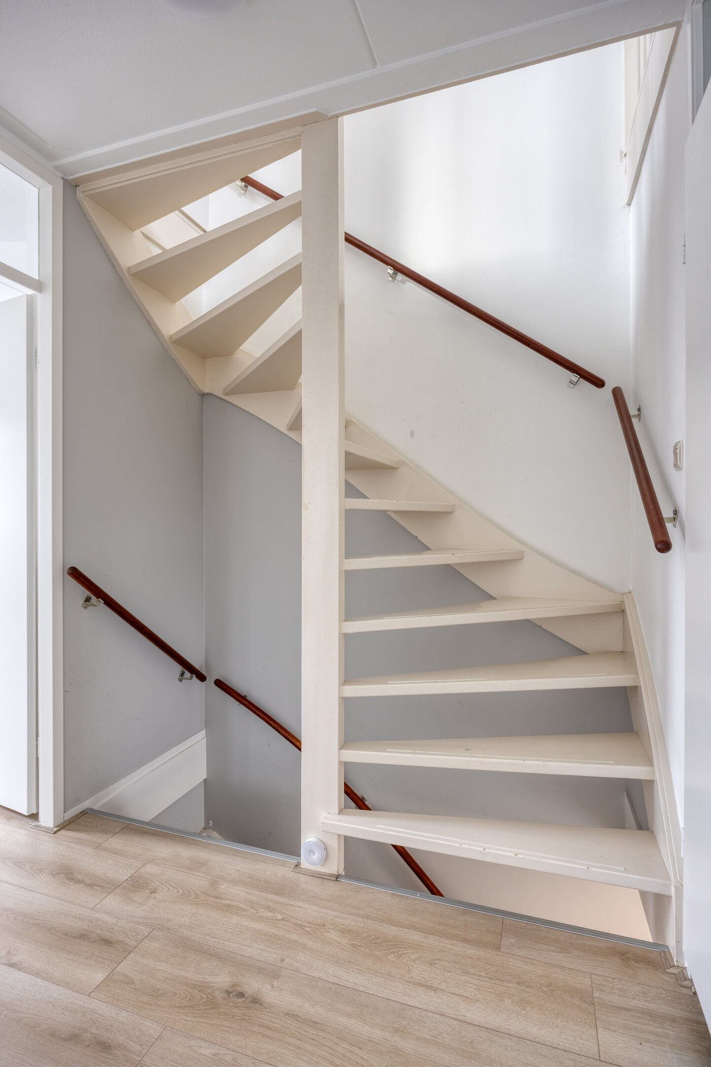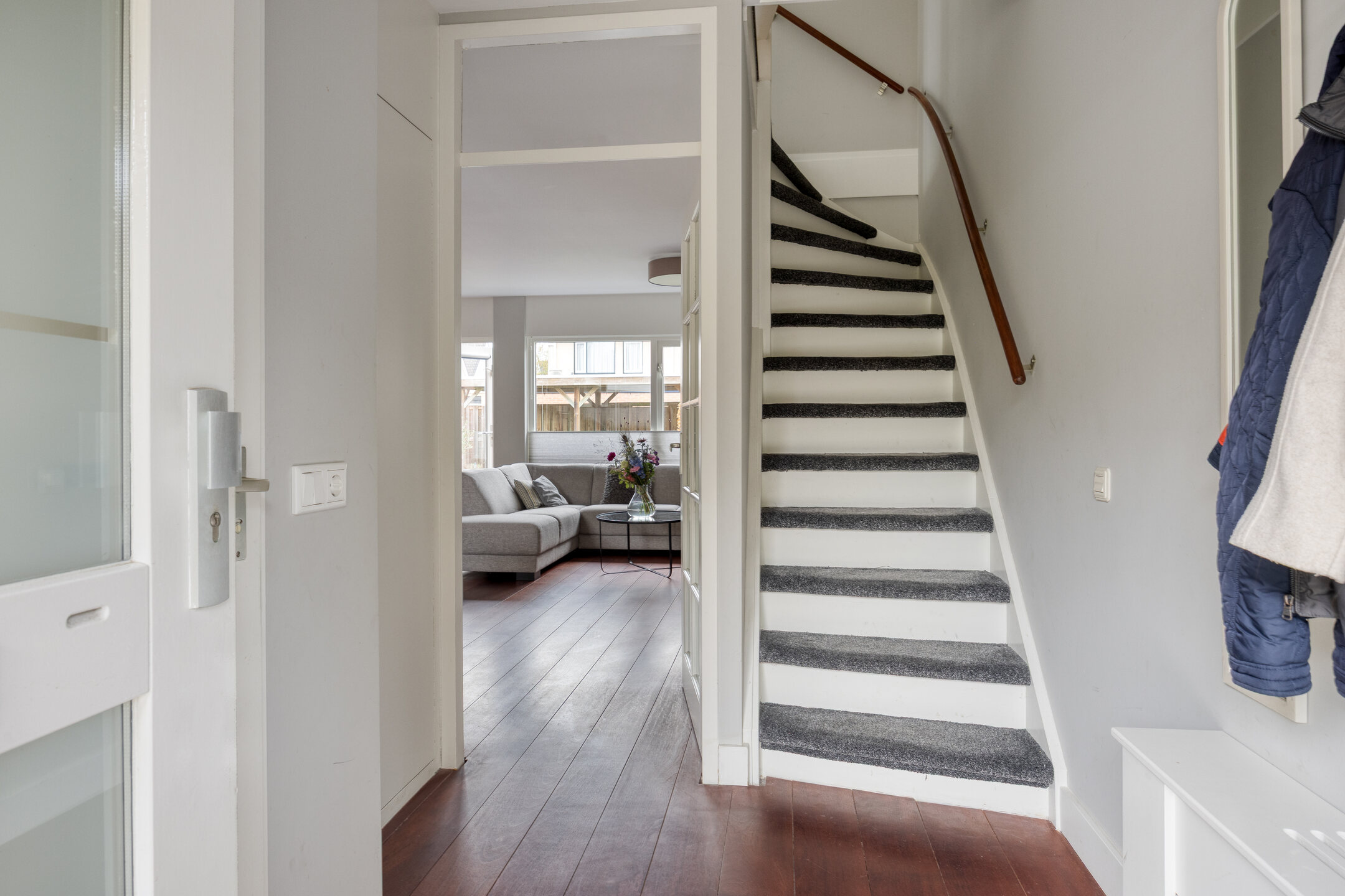 Via de entree kom je in de hal met de meterkast, het toilet, de trapopgang en de toegang tot de woonkamer.