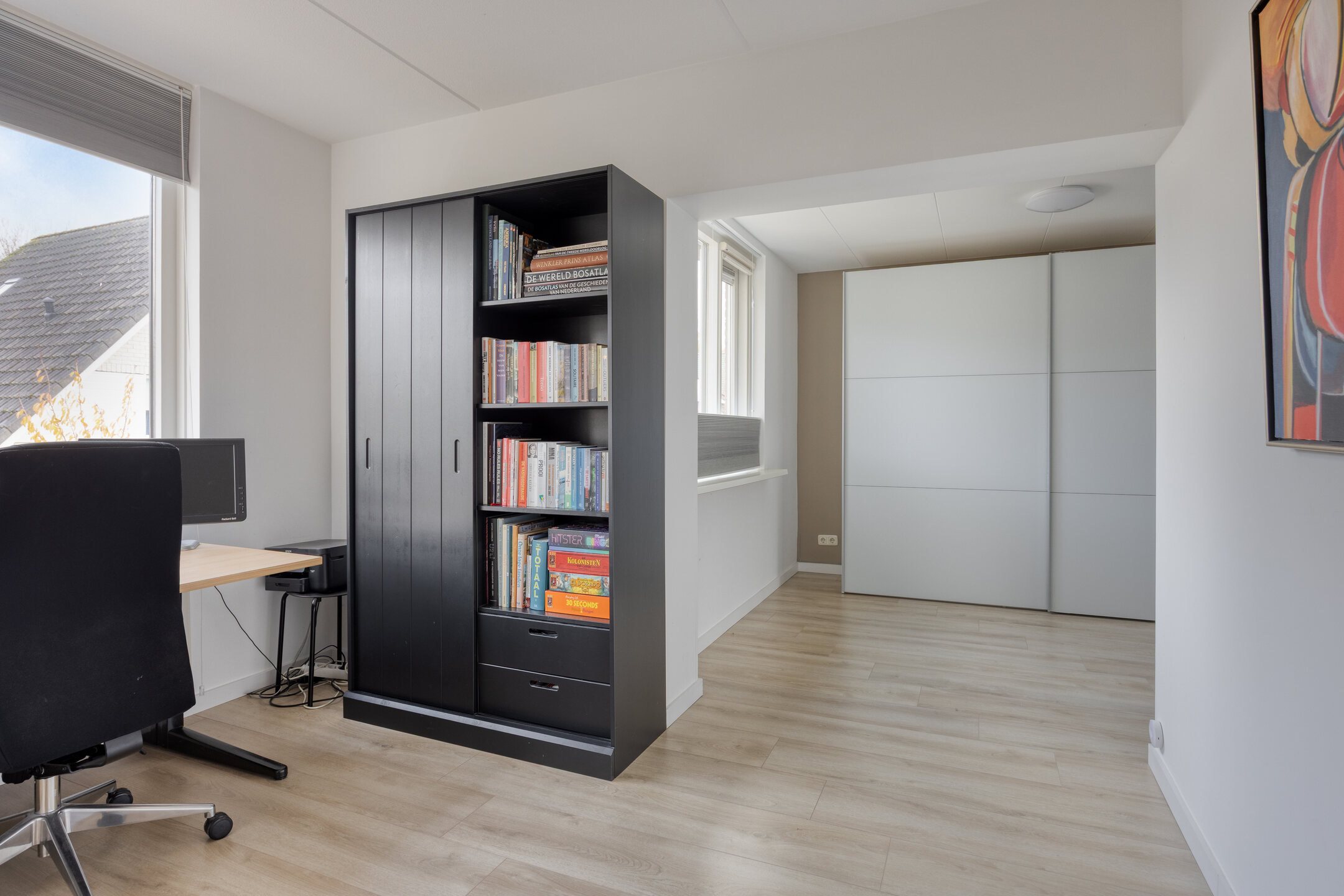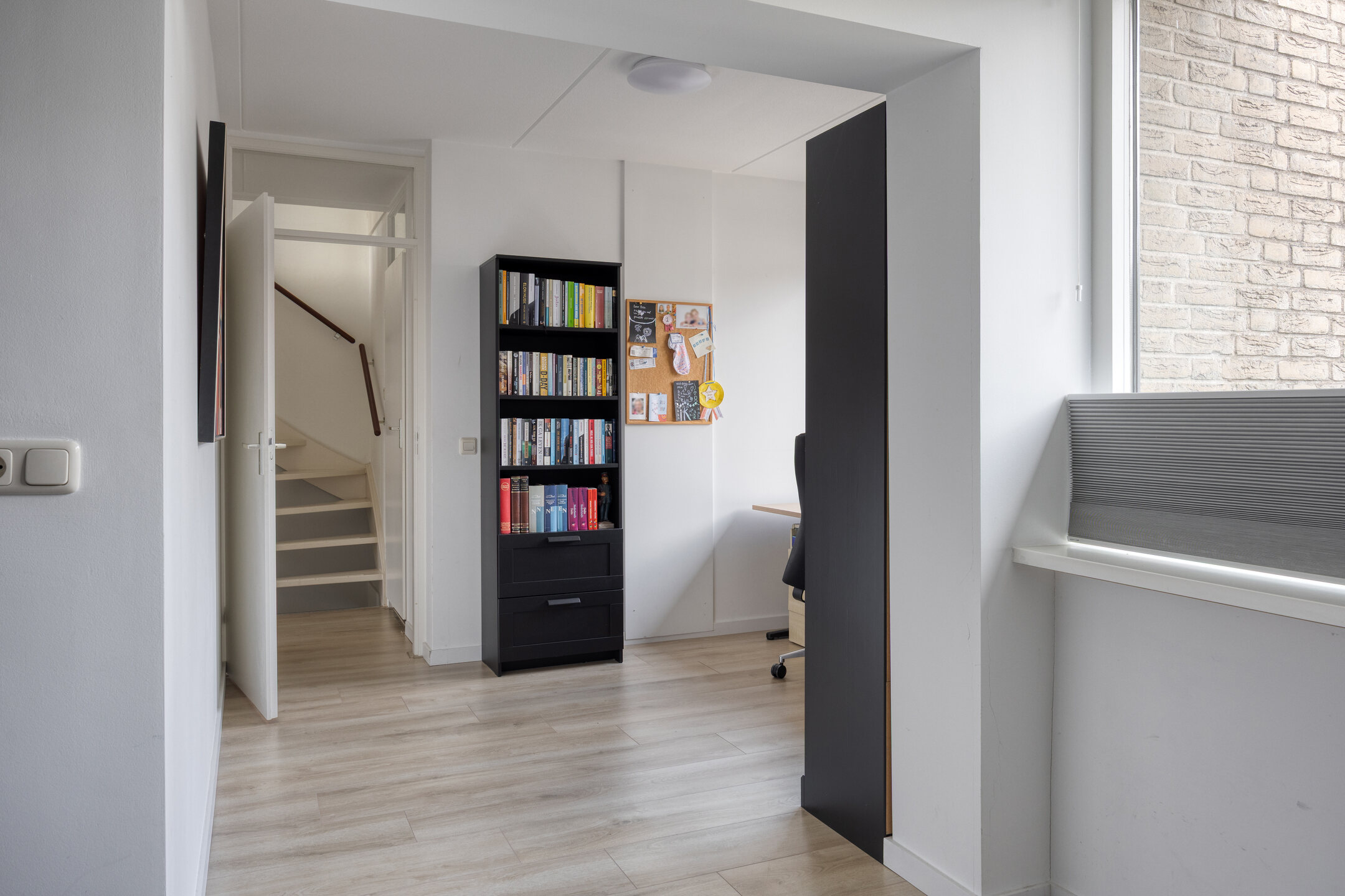 Aansluitend vind je een extra kamer (ca. 3.37 x 2.54 m), momenteel in gebruik als werkkamer, maar ook heel geschikt als slaapkamer, inloopkast of speelruimte.