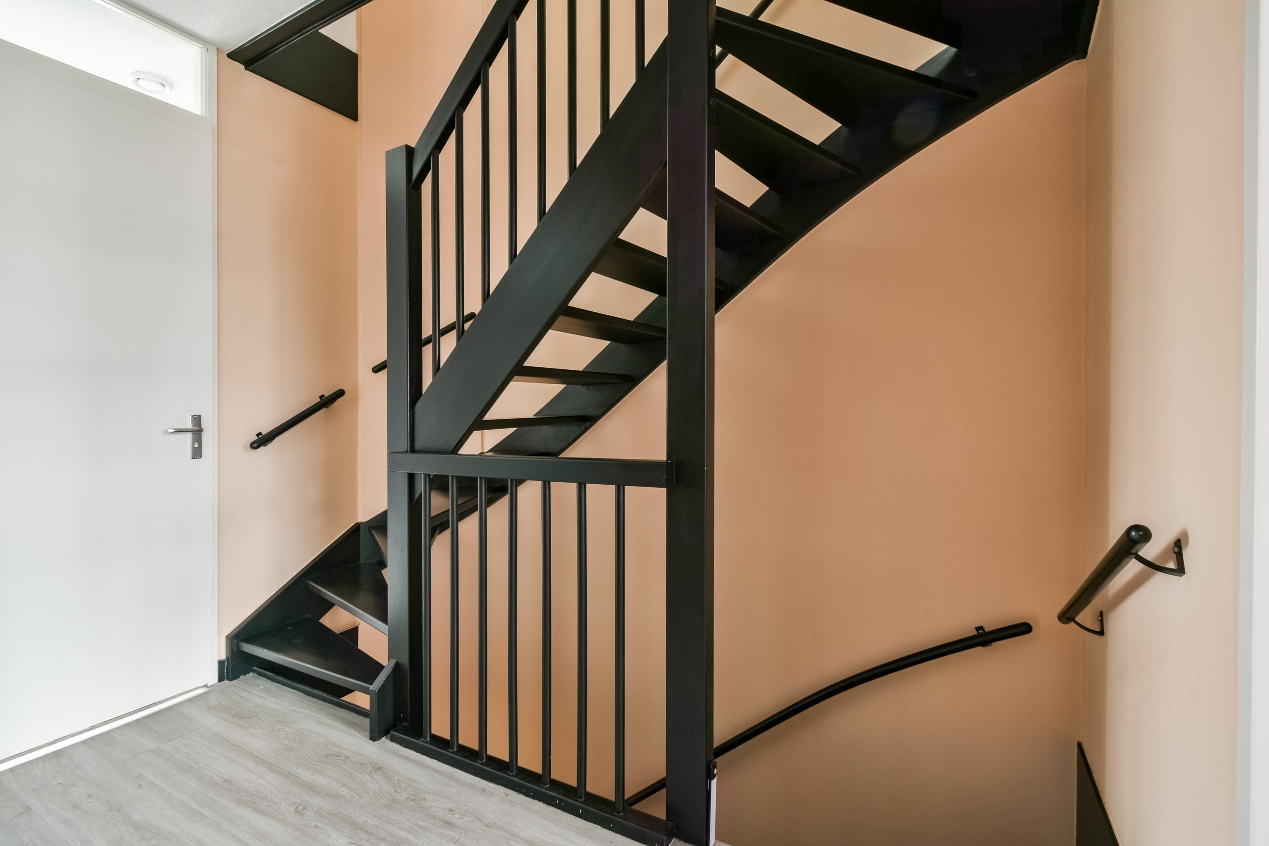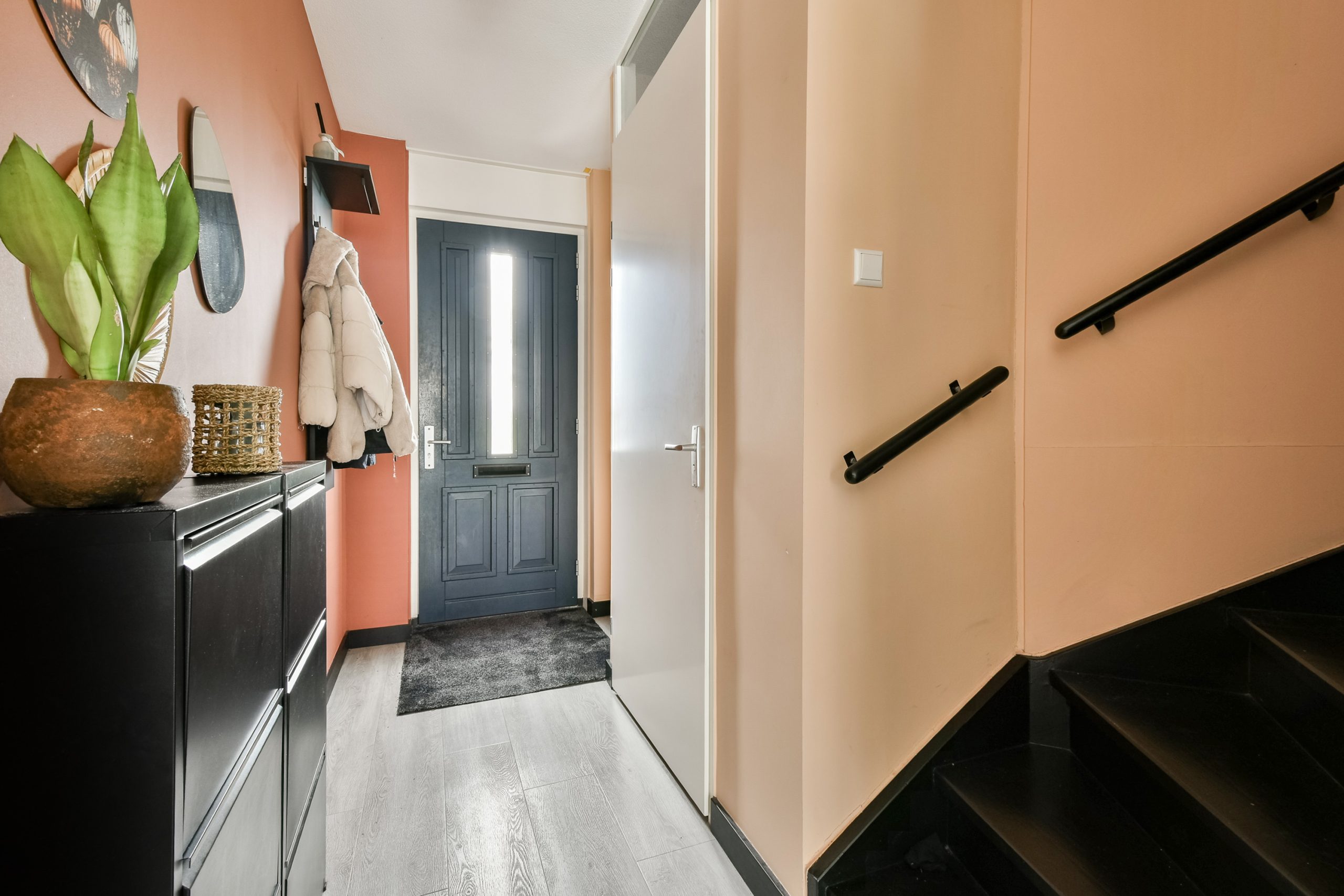 Entree, hal met meterkast, toilet en trapopgang naar de eerste verdieping. Vanuit de hal is er toegang tot de woonkamer.