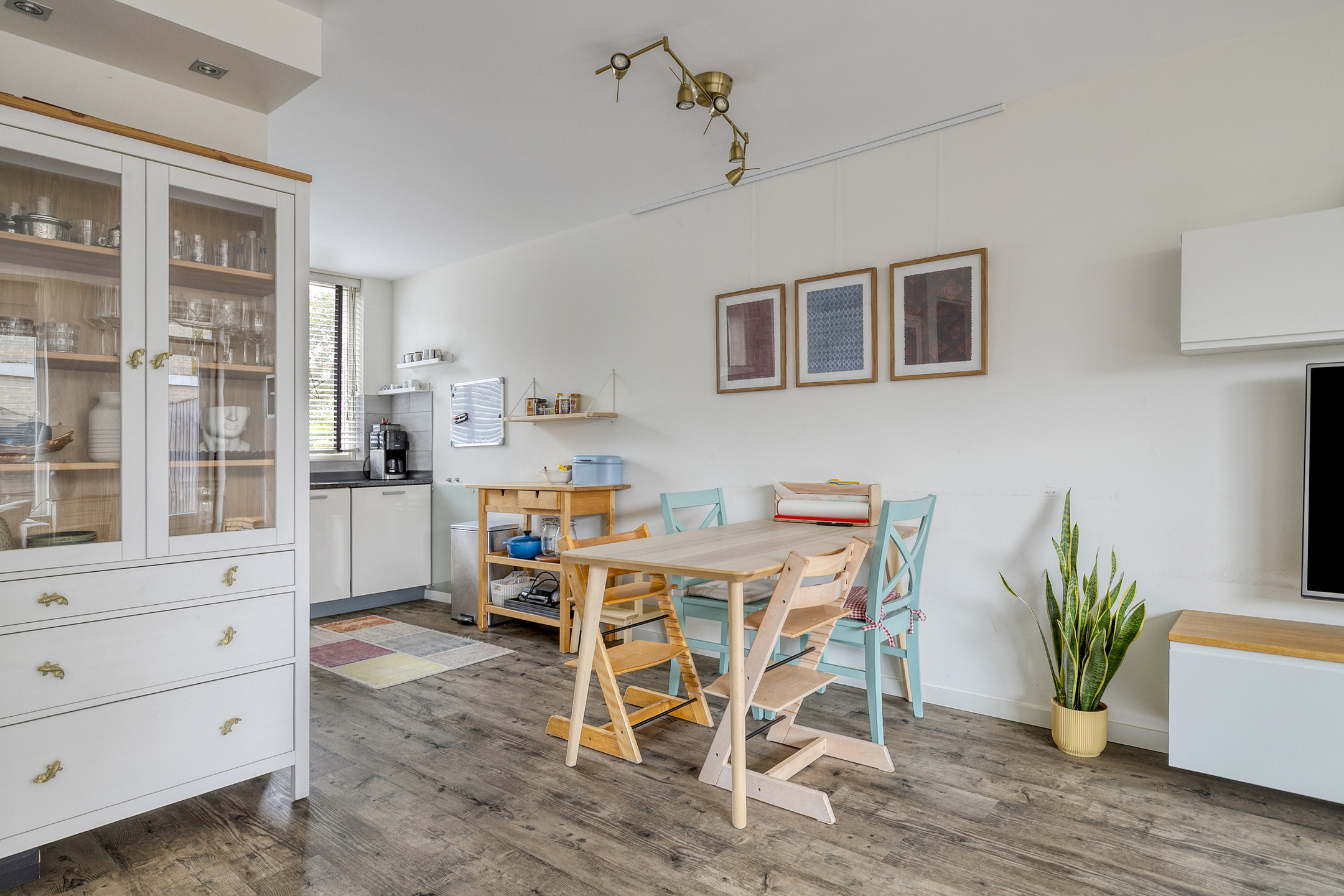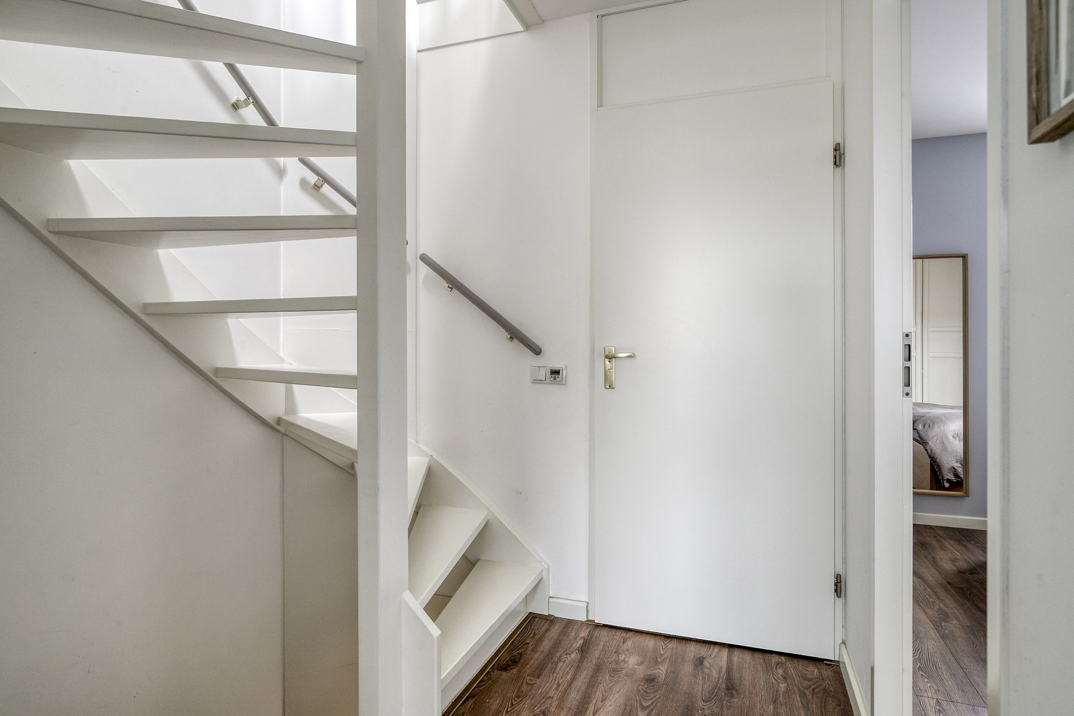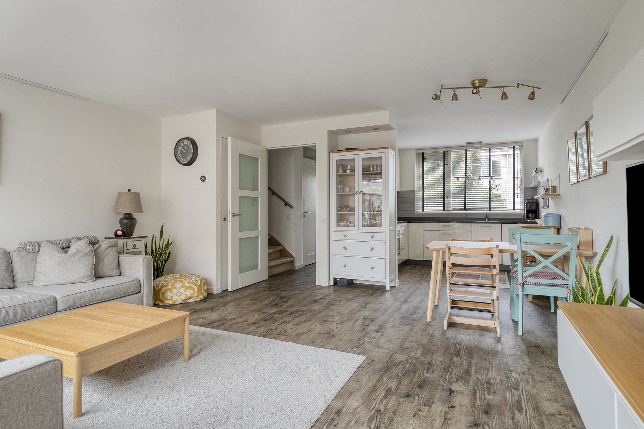 En onder de trap zit een handige bergkast voor het opbergen van de stofzuiger en voor de boodschappen voorraad.