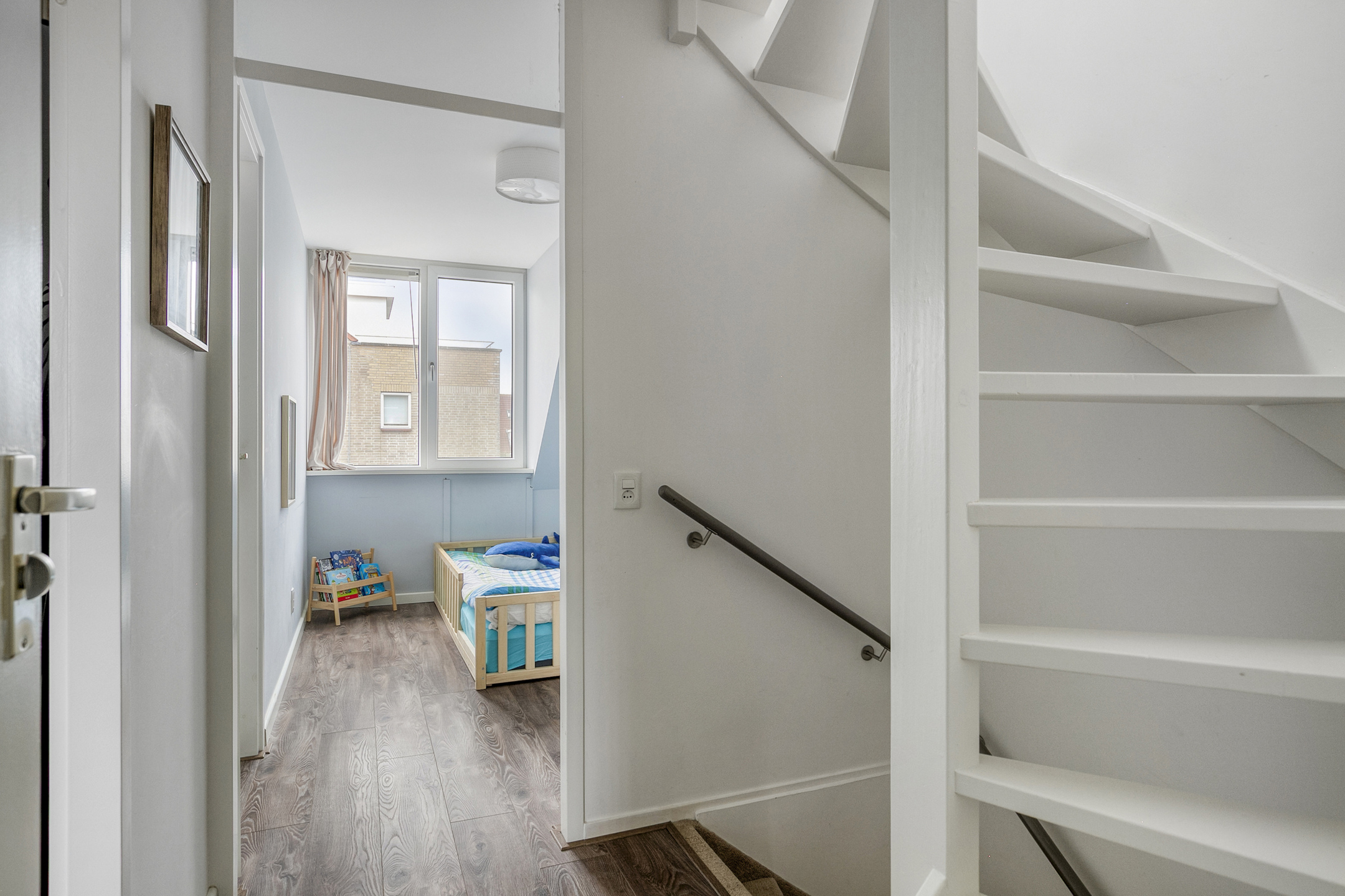 Overloop met toegang tot de slaapkamers en de badkamer.