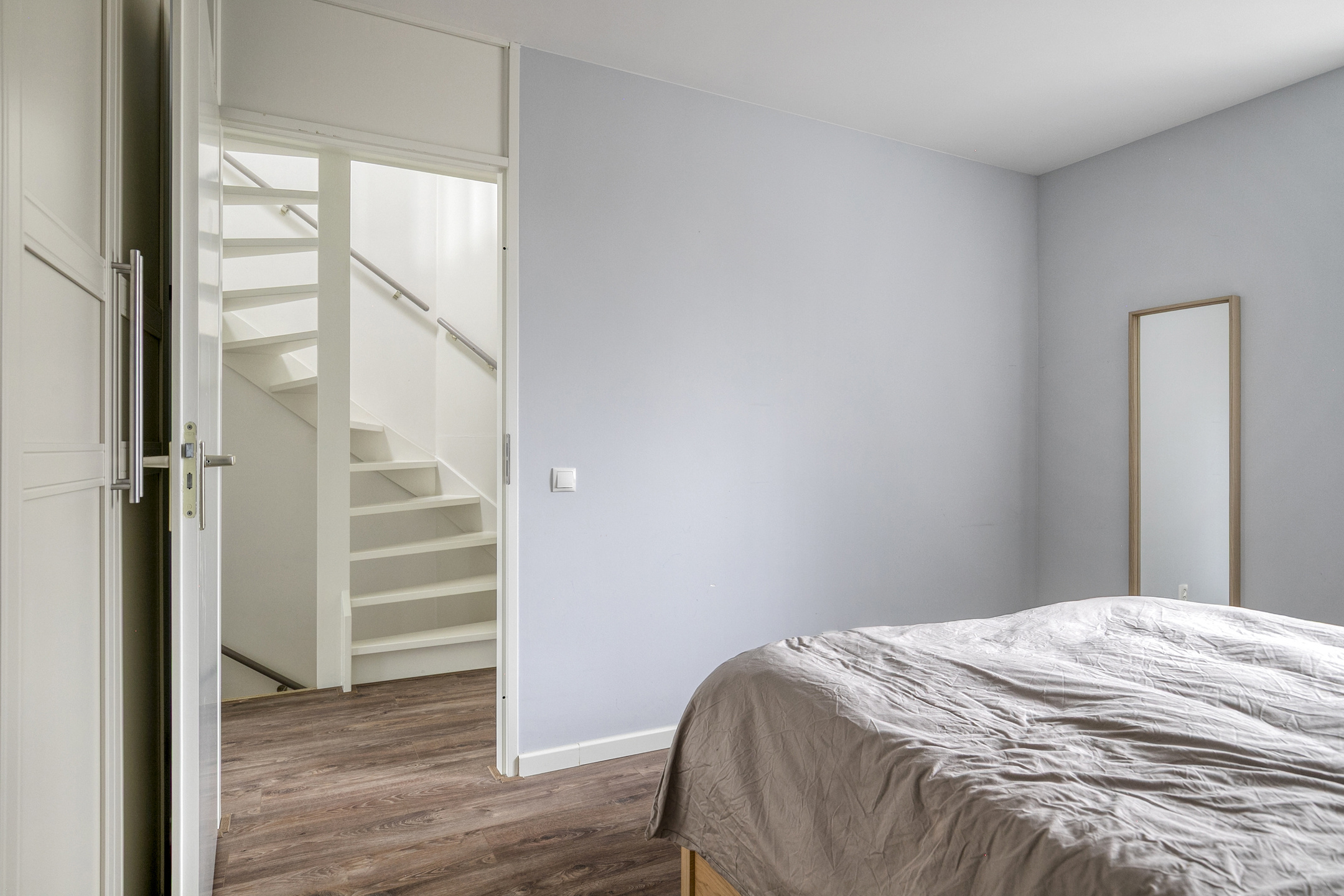 Op de gehele 1e verdieping ligt een laminaatvloer (2022)