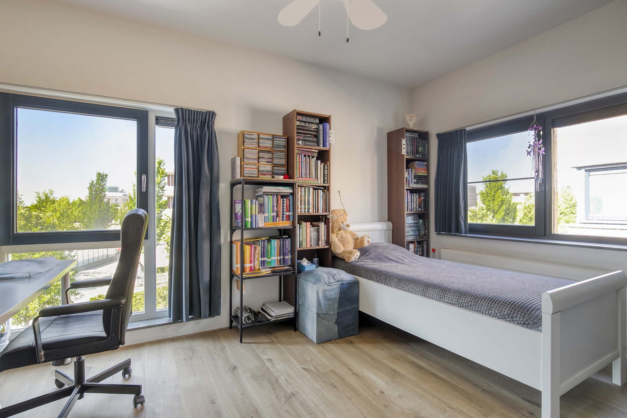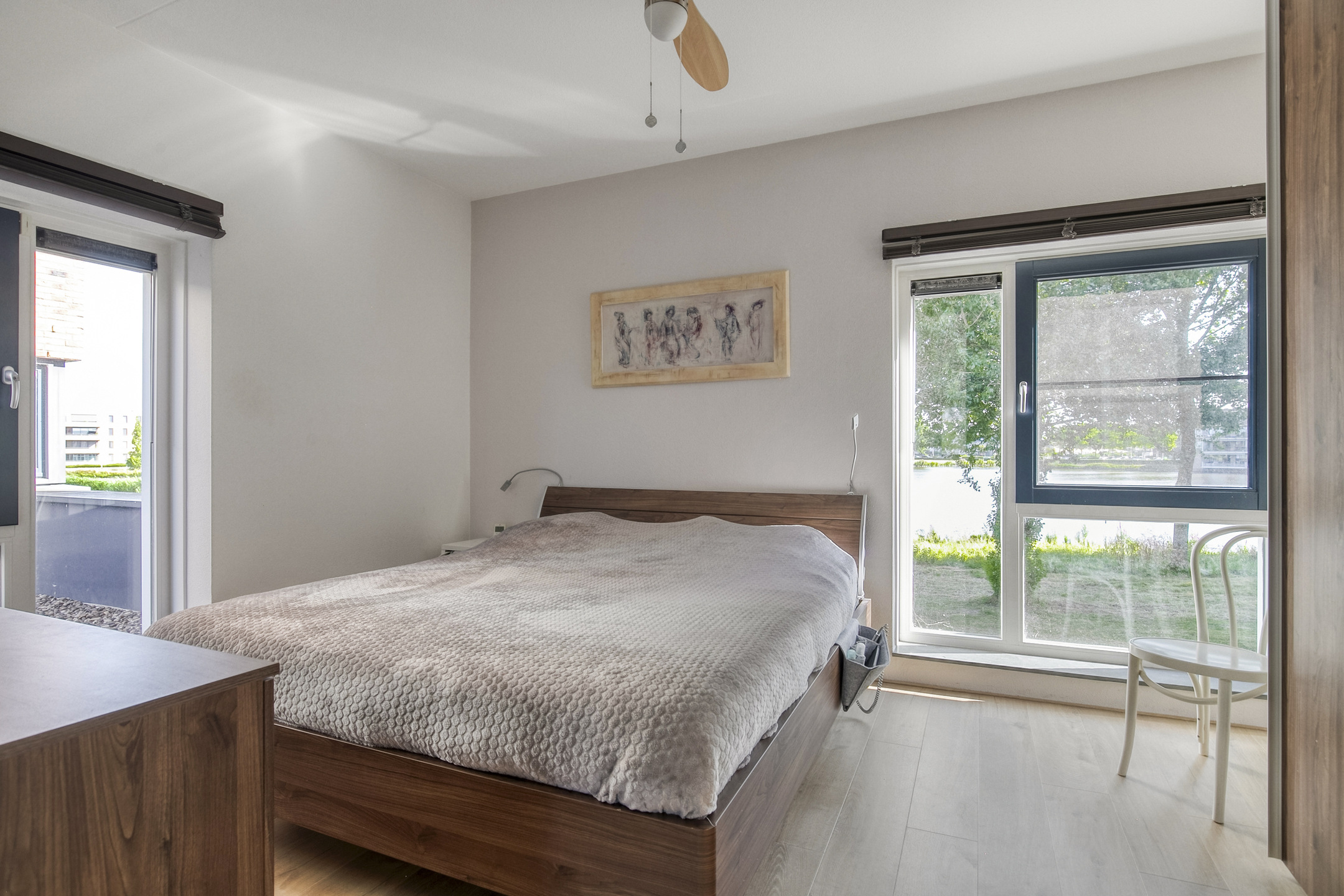 Slaapkamer 1: royale masterbedroom aan de voorzijde gelegen met weids uitzicht over de Berkelse Plas.