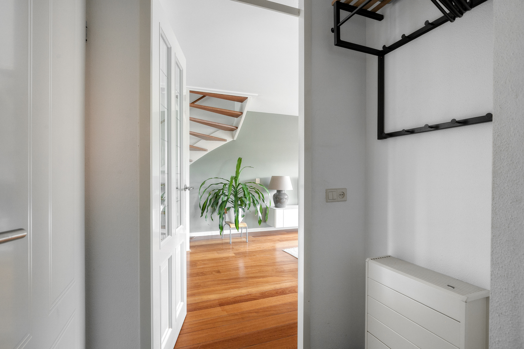Ruime overloop met vlizotrap, welke toegang geeft tot de praktische bergzolder.