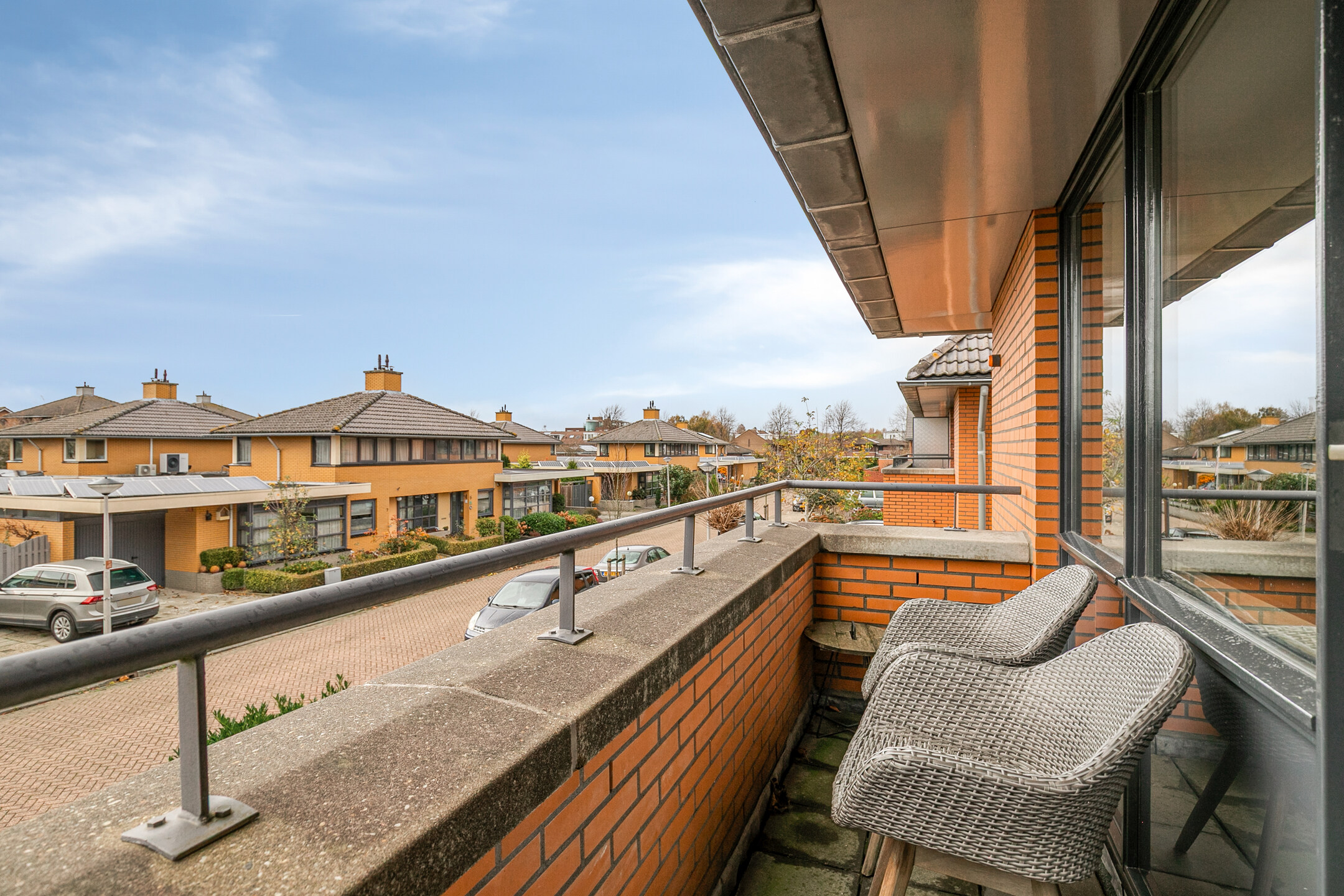 Masterbedroom (ca. 3.08 x 5.38 m) aan de voorzijde, met toegang tot het balkon.