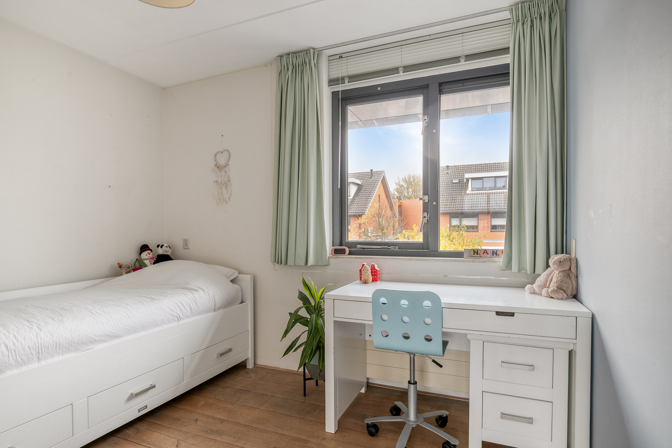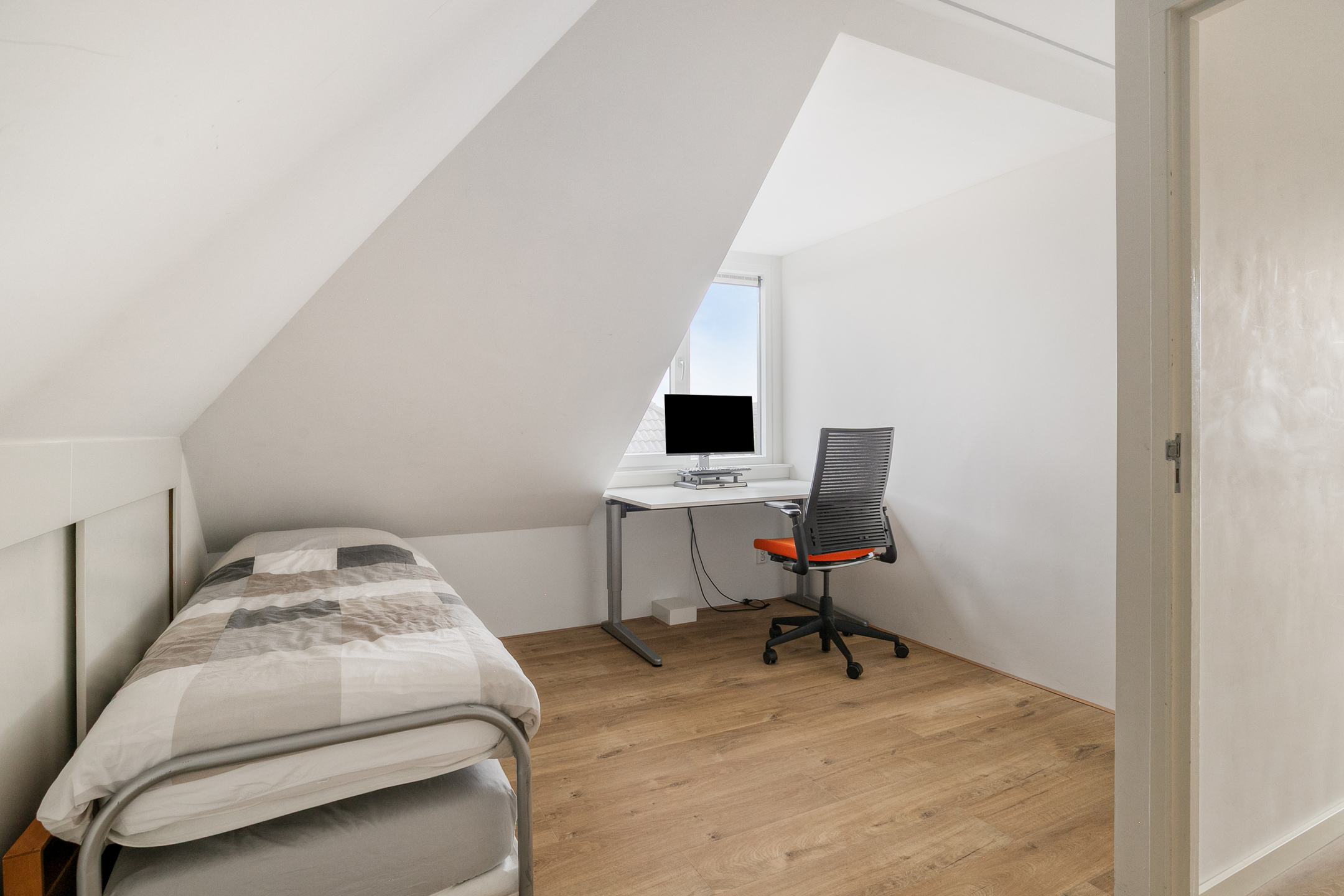 Slaapkamer 4, gelegen aan de voorzijde, is voorzien van een vaste kast met de cv-installatie en biedt veel bergruimte.